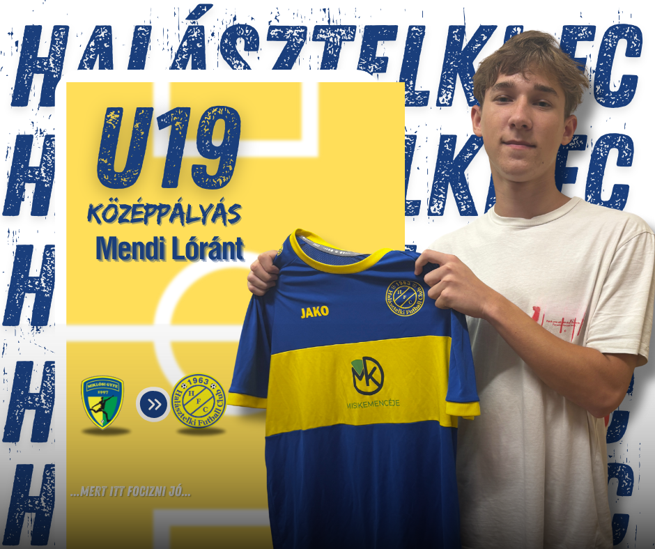 A legidősebb utánpótlás korosztályunk harmadik érkezője Mendi Lóránt, aki a Miklósi GYFE csapatától igazolt Halásztelekre