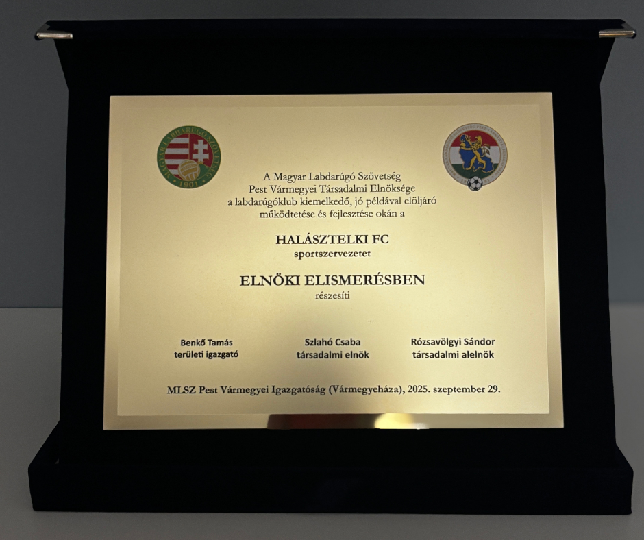 Köszönet az MLSZ Pest Vármegyei Társadalmi Elnökségének az elismerésért.