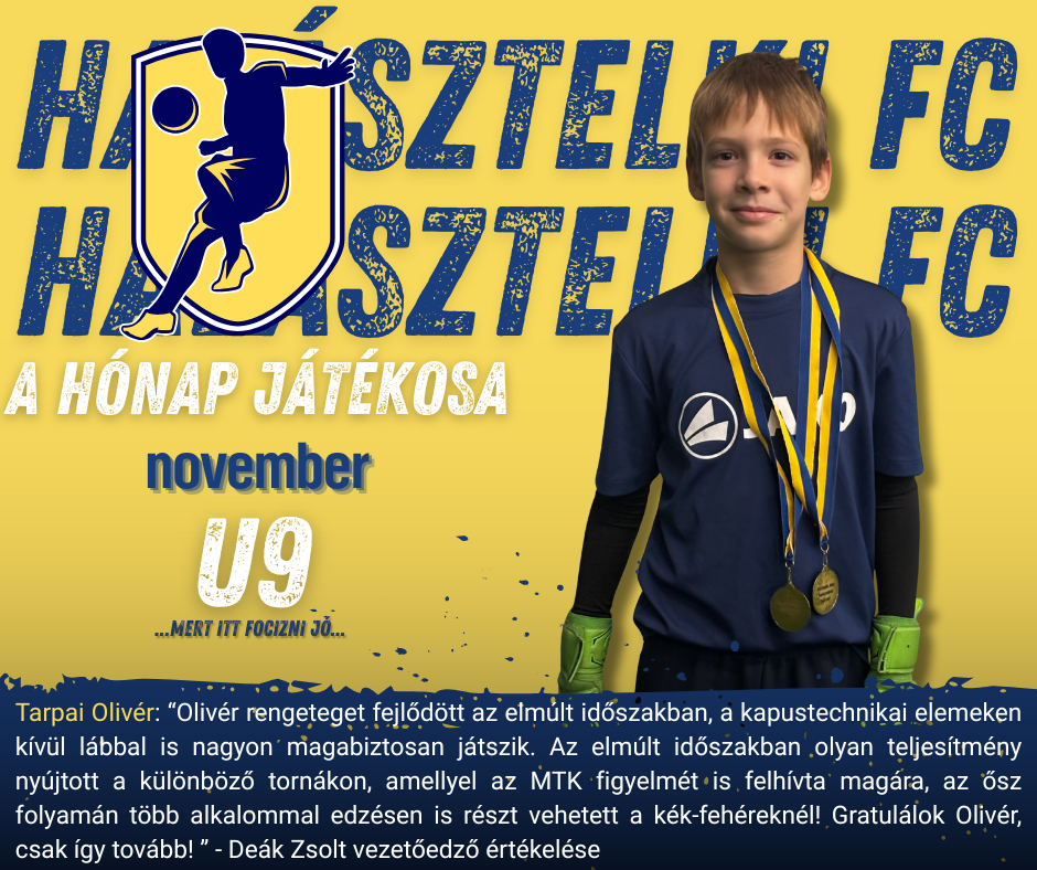 Ugyan az idei év lassan a végéhez közeledik, de Mi rendületlenül folytatjuk „Hónap játékosa” sorozatunkat. Ennek során vezetőedzőink megválasztják a csapataik adott hónapot érintően legjobb teljesítmény nyújtó játékosát, akik a hónap legjobb játékosa elismerésben részesülnek ![]()